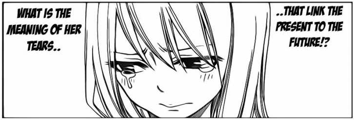 the chapter formally began with where it left off, that is, when Natsu and his gang met up with the "future Lucy".